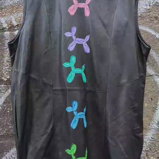 Jeff Koons celebrated the ephemeral nature of joy, life, and happiness by turning something fleeting all solid-like. Painting balloon dogs on this leather dress is kinda something like that, but you can wear it out.